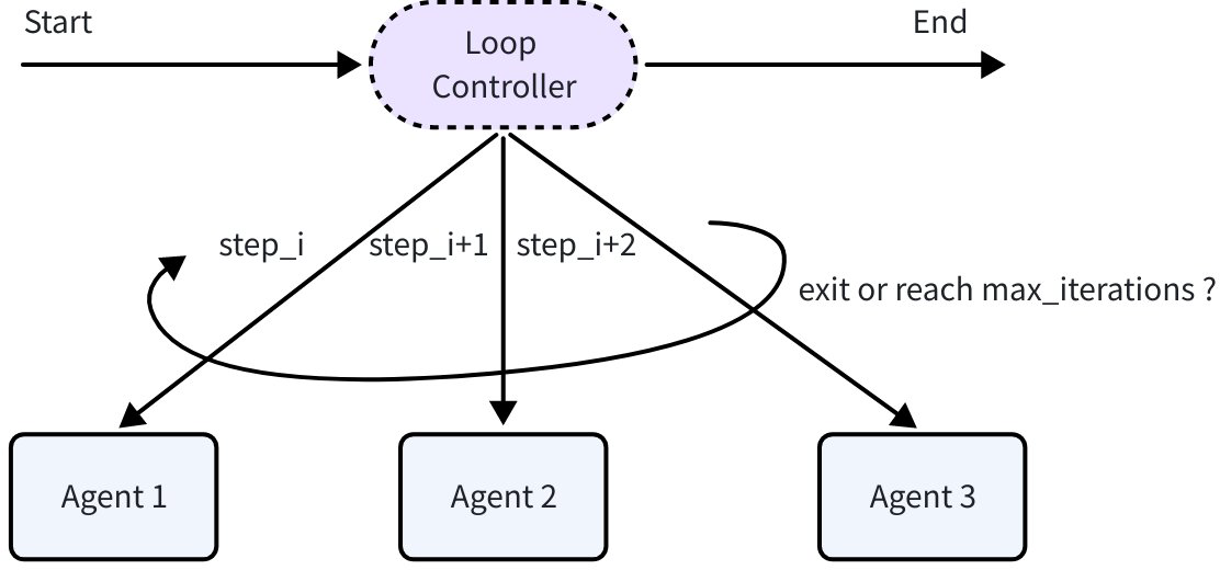 • Agent2: [SequentialAgent, LoopAgent, Agent1, Agent2]