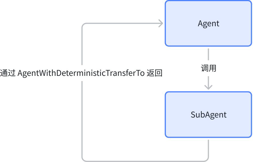 AgentWithDeterministicTransferTo 是一个 Agent Wrapper,在原 Agent 执行完后生成预设的 TransferAction,从而实现静态配置 Agent 跳转的能力: