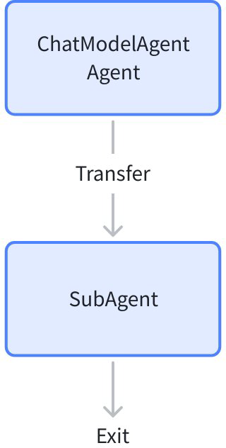 为了让 Eino ADK 在接受到 TransferAction 可以找到子 Agent 实例并运行,在运行前需要先调用 SetSubAgents 将可能的子 Agent 注册到 Eino ADK 中: