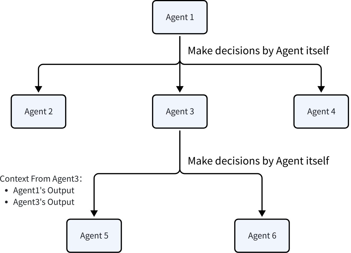 • 可采用 SetSubAgents 函数,构建 「多叉树」 形式的 Multi-Agent