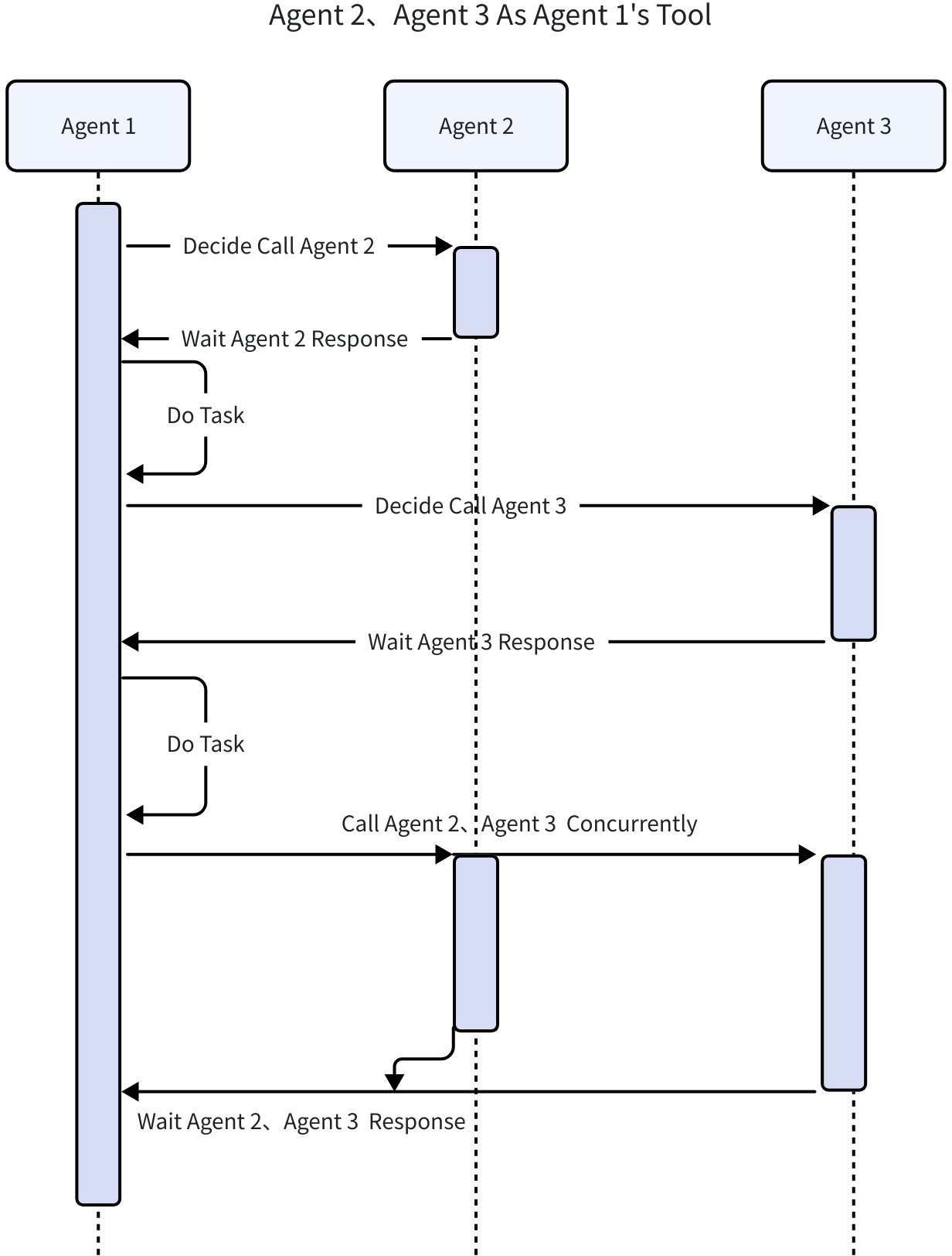 ToolCall(AgentAsTool)将 Agent 当成 ToolCall 调用,等待 Agent 的响应,并可获取被调用Agent 的输出结果,进行下一轮处理