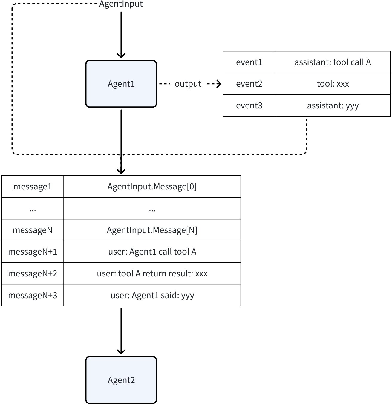 默认情况下,其他 Agent 的 Assistant 或 Tool Message,被转换为 User Message。这相当于在告诉当前的 LLM:“刚才, Agent_A 调用了 some_tool ,返回了 some_result 。现在,轮到你来决策了。”
